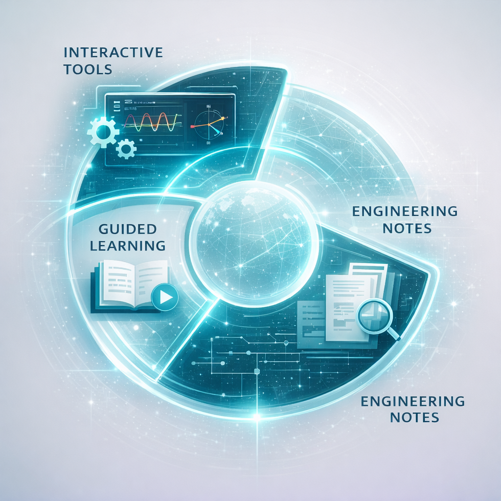 For engineers arriving from search, the homepage makes the site purpose clear: tools first, learning second, and reference material close behind.