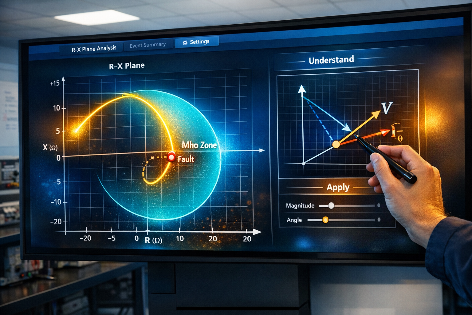 Walk through directional logic, phasors, impedance movement, and sequence concepts with tools that are easier to grasp than static diagrams.